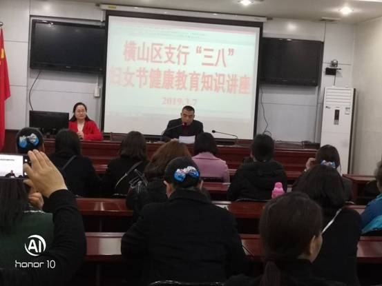 在三八妇女节来临之际,横山区妇幼保健院与卫校、横山农行联合举办关爱妇女健康知识讲座,关注广大女性身体健康,普及生殖健康知识。